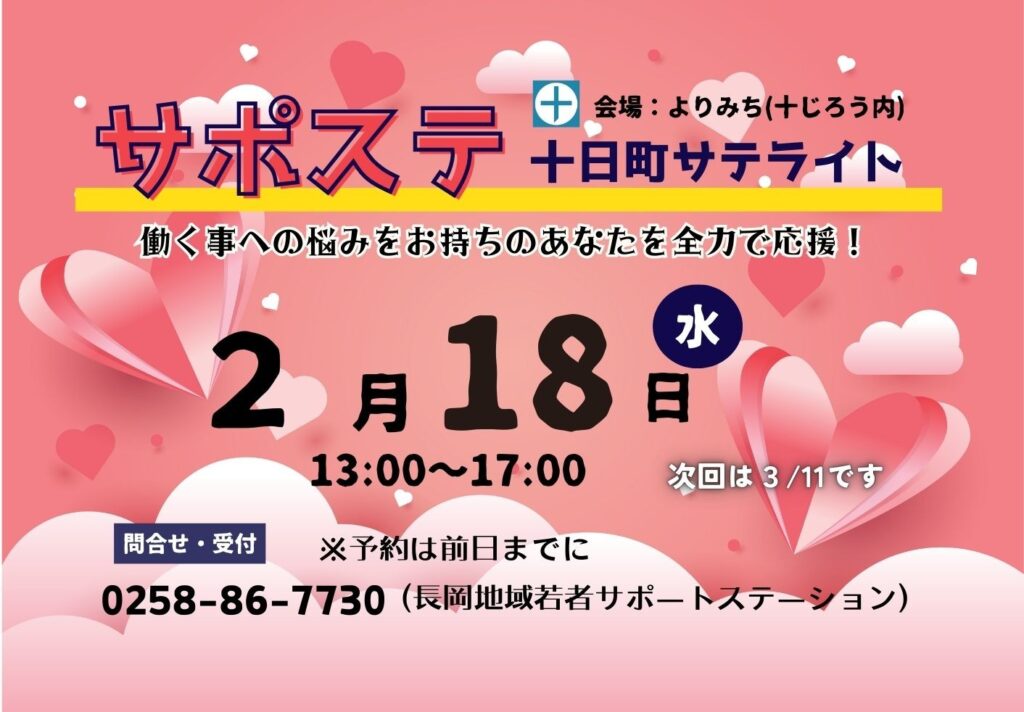 「自分に合う仕事って?」「面接が心配」「ブランクがあるんだけど」 働くことへの悩みをお持ちのあなたを全力で応援します! 【開催日】2月18日(水)*毎月第2水曜日(8月のみ第1水曜日) 【時 間】13:00~17:00 …