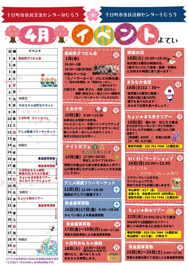 4月イベントカレンダー